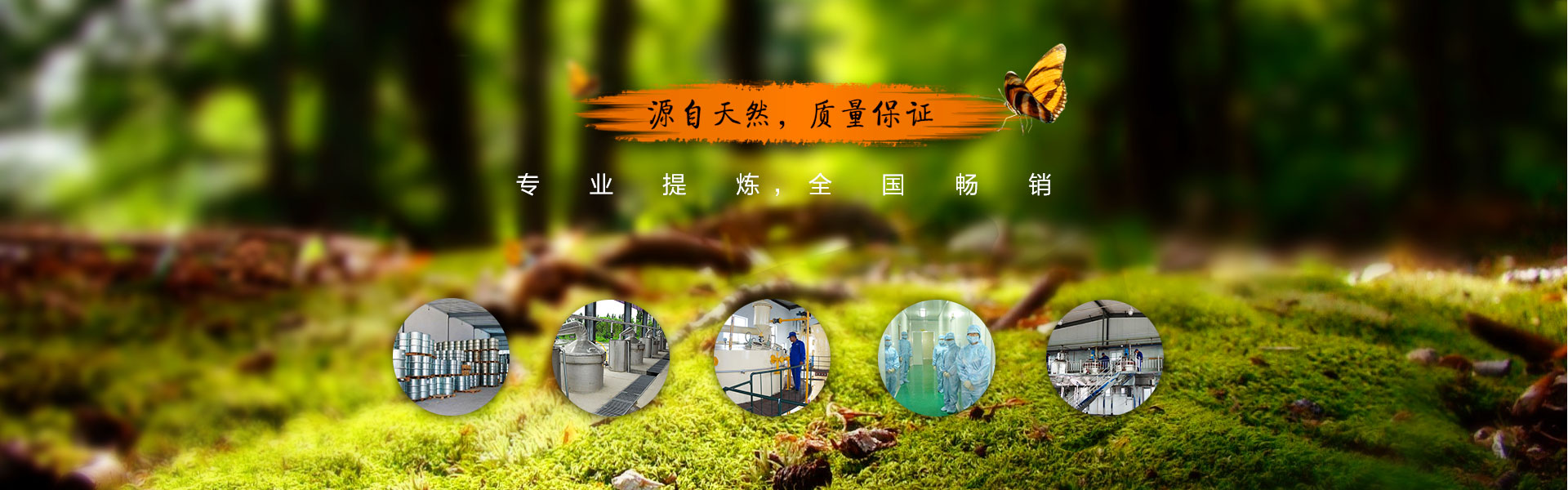 公司利用當地及國內純天然資源優勢, 致力從事天然植物精油高位提煉分餾 ,公司主要產品分為:林產精油、全草精油、全果精油、薄荷油和薄荷腦等化工原料。公司自有原料林基地3.6萬畝,且在國內原料主產地均設立眾多原料收購站點及初加工站。確保了公司原材料的充足供應。